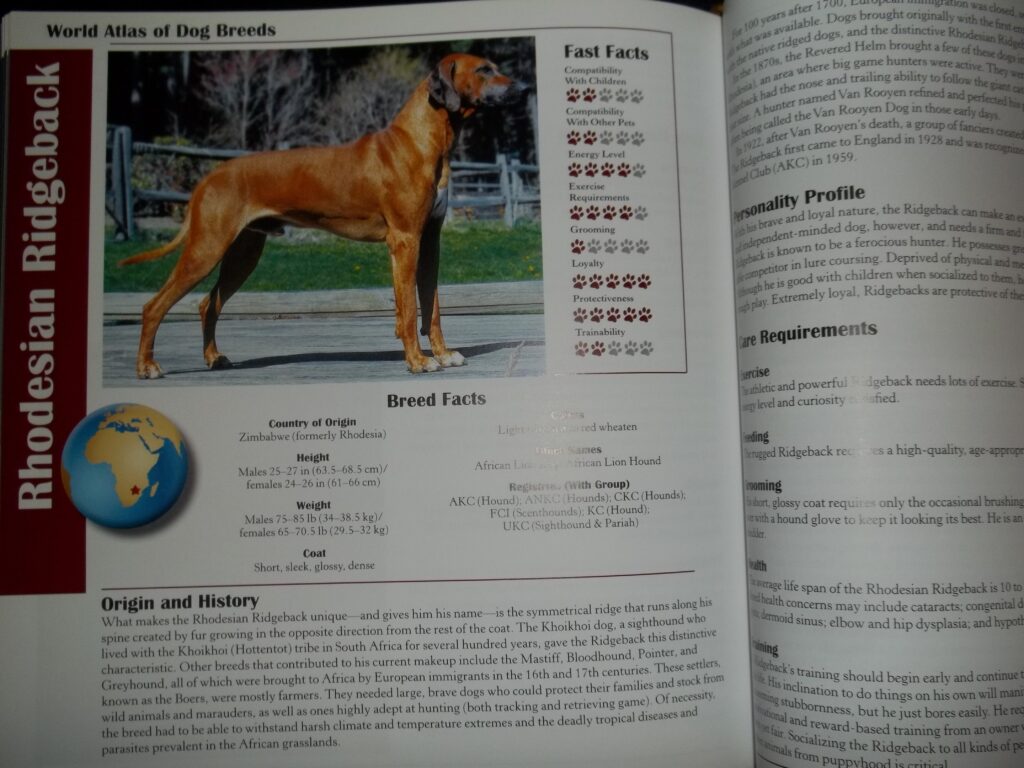 There are tons and tons of Japanese dogs in this book that are all really handsome. Really furry and handsome. But this book does not show any other Ridgeback dogs.