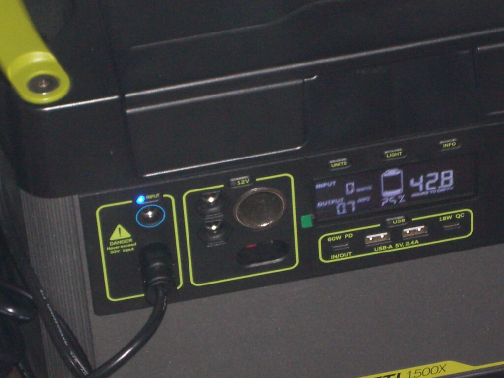 It’s a cloudy rainy day, so it makes sense that the Solar doesn’t work yet. It’s 8 AM. Every once in a while the input goes to 3-5 Watts.