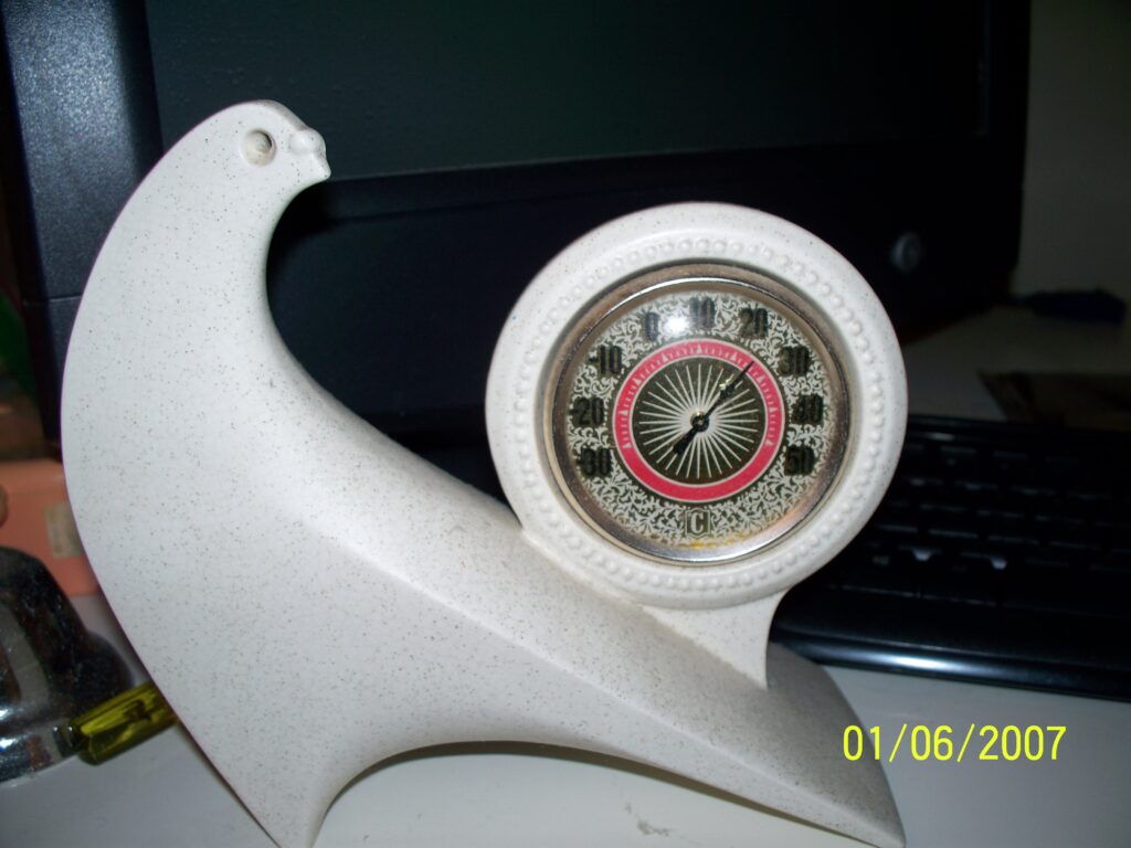 Denise had both these items the entire time and all types of stuff everywhere. The bottom of the mousepad is branded and says Seagate. The clock which seems like its Chinese could have been something I owned a long time ago. The clock is a Rooster design but is also important to dogs because it kind of looks like my Bear metal thing.