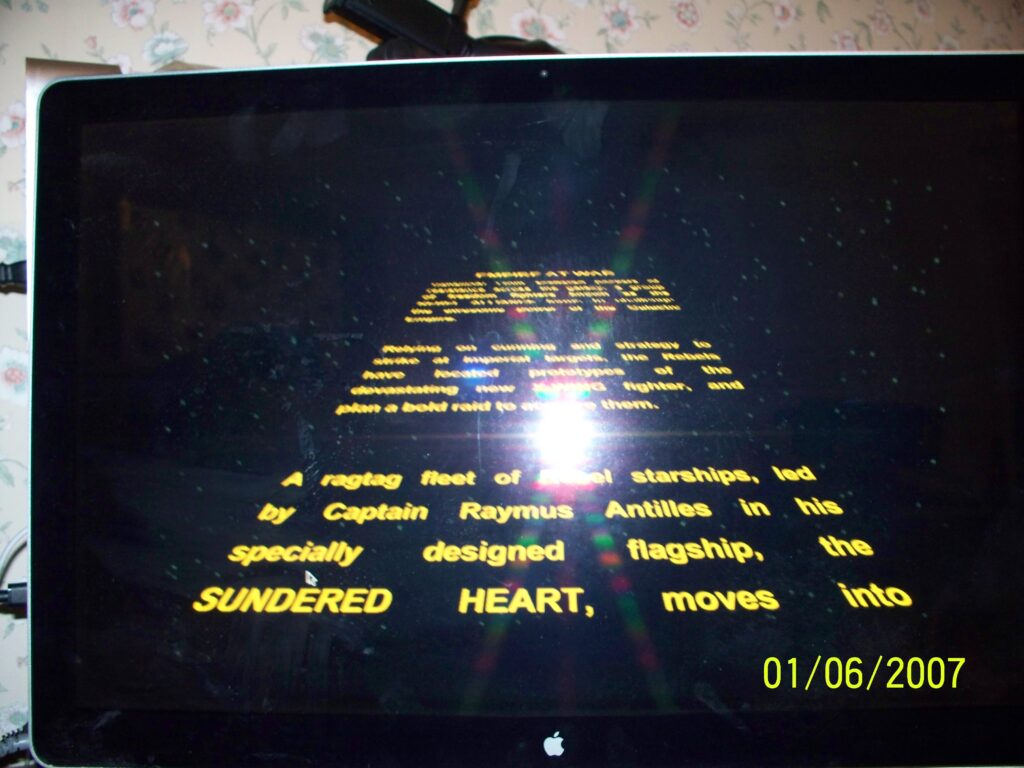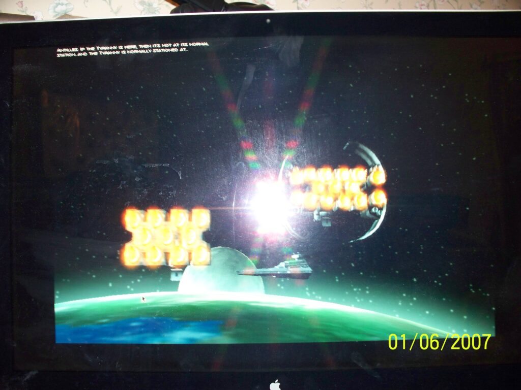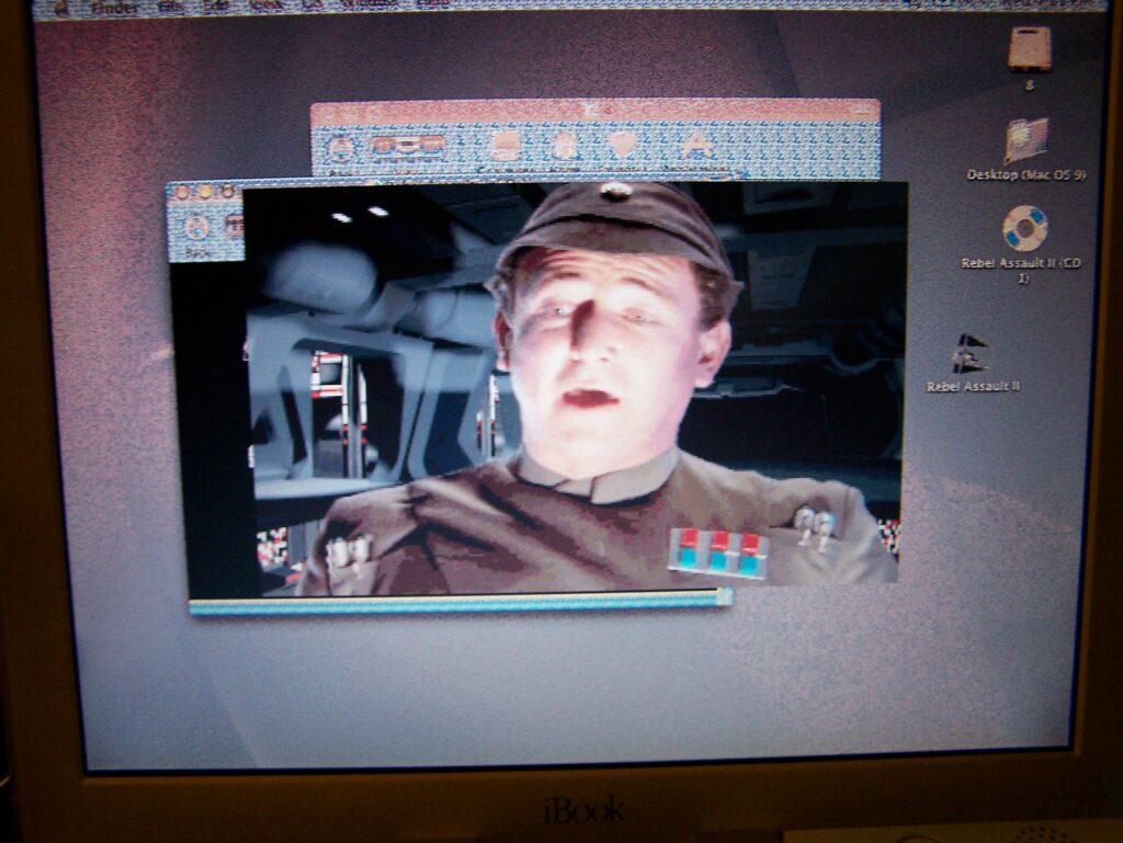 This Starwars game isn’t hype and is really great. It has tons of video cut scenes. And is able to run on a G3 iBook but kinda buggy. There is no moral of the story, a Henry person scratched up the back up this G4 iBook.